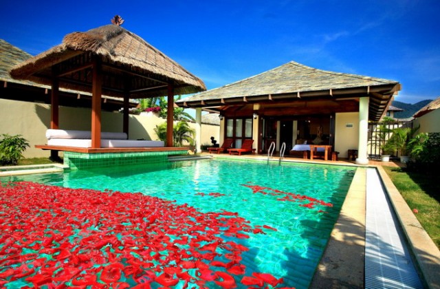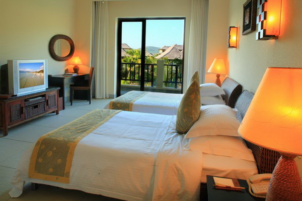 三亞亞龍灣五號(hào)度假別墅酒店位于亞龍灣國(guó)家AAAA級(jí)旅游度假區(qū)內(nèi),是由108棟獨(dú)具熱帶濃郁巴厘島風(fēng)情的園林別墅和1棟會(huì)所組成。酒店與大海相臨,匯聚人脈,盡享上流生活貴胄之尊;與高爾夫球場(chǎng)互倚,吸納廣袤大地之靈氣,成就一方純美俊景于眼前。系當(dāng)前中國(guó)首家超大型至尊濱海度假別墅區(qū)。三亞亞龍灣五號(hào)度假別墅酒店總占地面積200畝,總建筑面積4.5萬(wàn)平方米。其中別墅建筑面積3.6萬(wàn)平方米;會(huì)所面積8千平方米;綠地面積9.5萬(wàn)平方米,綠化率達(dá)71%;并建有約1.4萬(wàn)平方米的人工湖泊。三亞亞龍灣五號(hào)度假別墅酒店由九種不同類(lèi)型的單體別墅組成。戶型包括行政別墅、三居別墅、四居別墅、情侶別墅、會(huì)所客房、五居別墅、國(guó)王別墅和總統(tǒng)別墅。每戶均設(shè)客廳、餐廳、廚房、保姆房及庭院、泳池、花園、蓮花池、SPA亭、車(chē)位,將古樸與現(xiàn)代,開(kāi)放與私密完美結(jié)合,追求“有若自然”的新貴族風(fēng)范。酒店將“中式管家”服務(wù)與現(xiàn)代高級(jí)度假酒店完美結(jié)合,首創(chuàng)了中國(guó)品質(zhì)海濱度假別墅酒店的全新服務(wù)模式。客房提供冰箱、迷你吧、嬰兒床、叫醒服務(wù)、沙灘接送、送餐等服務(wù),所有別墅均可免費(fèi)上網(wǎng)。