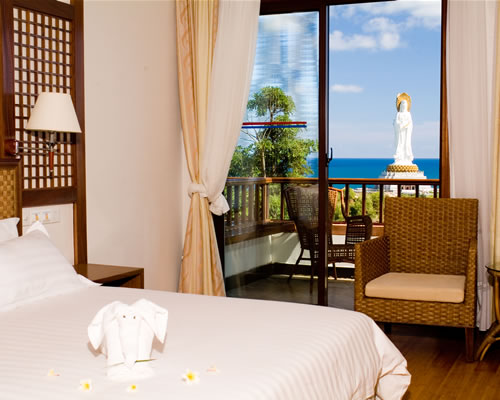 三亞南山迎賓館位于國家5A級景區(qū)南山文化旅游區(qū)內(nèi),距三亞市區(qū)42公里,距三亞鳳凰國際機場30公里,按五星級標準投資興建。獨具佛教文化特色、黎鄉(xiāng)文化特色和熱帶雨林風格的別墅式酒店迎賓,坐落于象征無上智慧的妙金山菩提園之側(cè),與108米南山海上觀音圣像相應對。進入酒店可以親身體驗佛教文化、觀賞熱帶雨林園林景觀,瞻仰世界上最高的海上露天大佛。祈愿觀音菩薩時刻的護佑,感受和平、慈悲、智慧的清涼勝境。代建筑風格,二十一棟遠古式的別墅錯落妙金山菩提園間,共有二百二十八間各式客房,房間裝飾典雅、別致,設備齊全,并配有獨立海景觀佛陽臺。海天佛國,利樂莊嚴,朝南海觀音,沐凈土福澤。有可容納800人的全海景素齋餐廳、主營淮揚菜系的海景中餐廳等配套設施一應俱全。是您觀光、休閑、度假及朝圣的福澤之選。