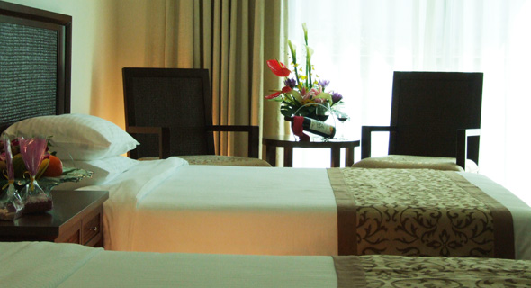 高級房,面積25平方米,樓層5-19層,有陽臺,大床(1.5*2米)雙床(1.2*1.8米),免費(fèi)寬帶
