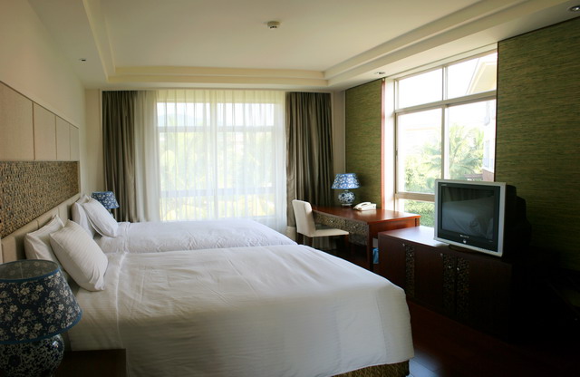 高級房: 分布于2-6層,有陽臺,有浴缸,房間面積50-58平方米,雙床(1.2*1.8米),免費寬帶