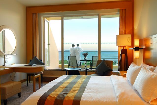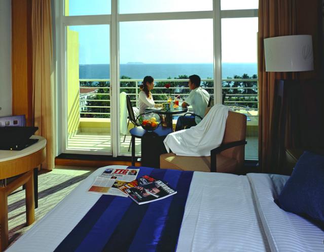180度豪華海景房,面積48平方米,樓層5-7層,有陽臺(tái),180度海景,大床(1.8*2米),雙床(1.2*2米),有浴缸,免費(fèi)寬帶